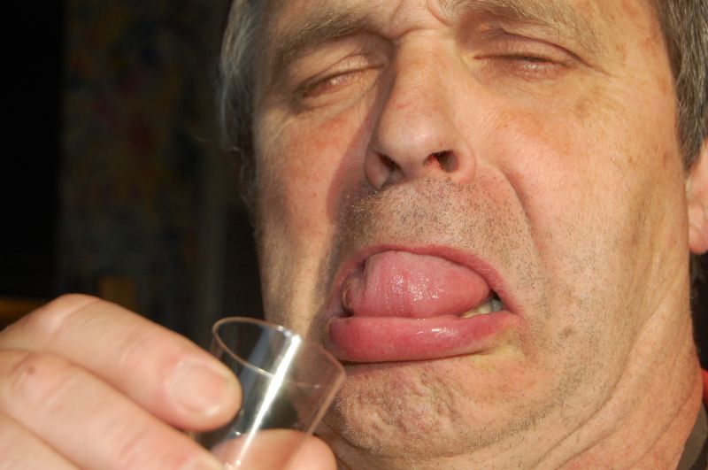De smaak is niet lekker, maar ook wel te drinken, al trek ik er wel een heel erg vies gezicht bij.